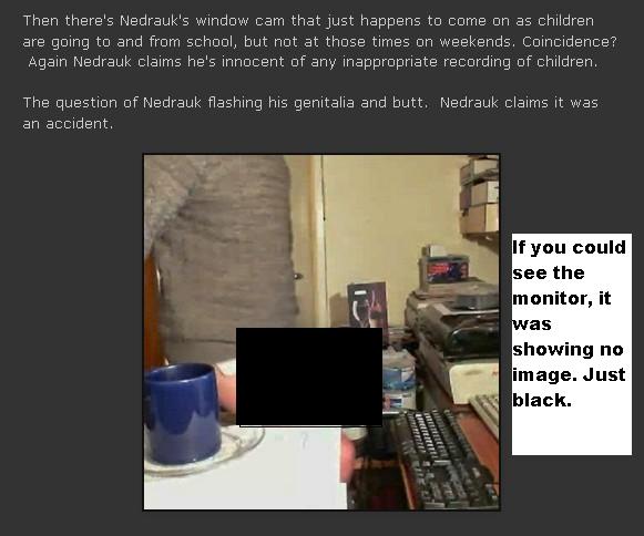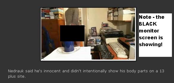 This oft repeated posting is from a broadcast which was in the archives for well over SIX MONTHS before anyone made an issue of it. Why was that? Does that not seem odd? One of the bloggers scoured hundreds of videos to find it - In October! The monitor was black whern I entered the room so I had no idea what was on camera. You can actually see it on the next image! The camera LED is also covered as it creates a blue reflection on the window glass when used in that position. The broadcast content was NOT DELIBERATE. |