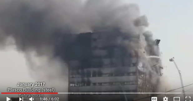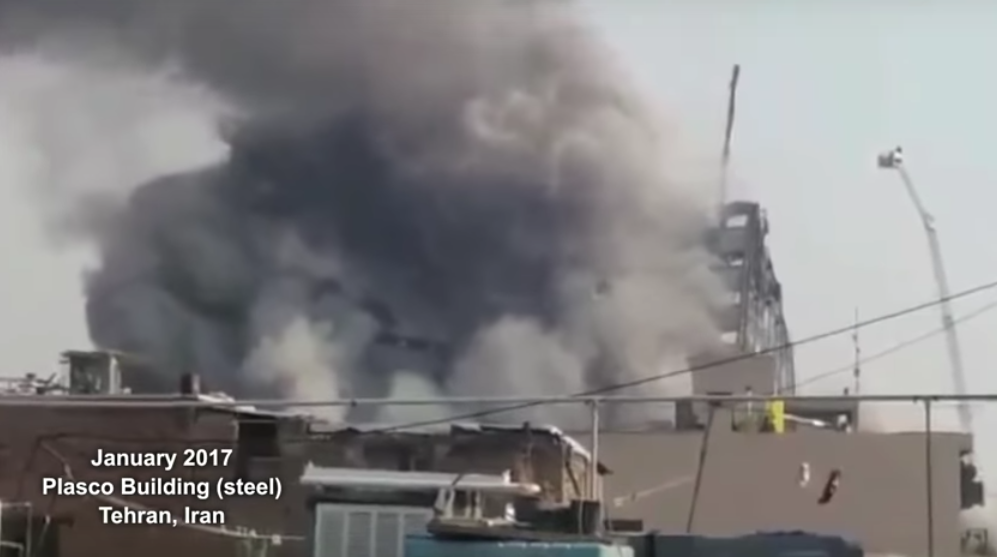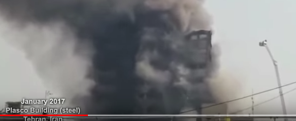 Top left Plasco. Bottom left WTC 7. Note the twisted sheets of the external walls in both cases. Middle - Windsor Tower. Right Grenfell Tower |