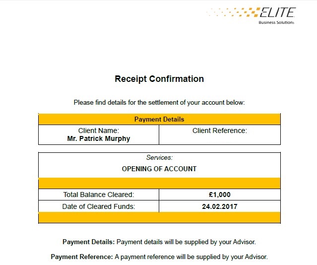 Elite are supposed to be paying me back £1,000.00 on March 31st. from an account I incorrectly sent money to. |