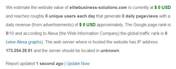 From the last new Elite Business Solution site It claims to belong to an "Award winning financial advisory firm" I wonder which that is?