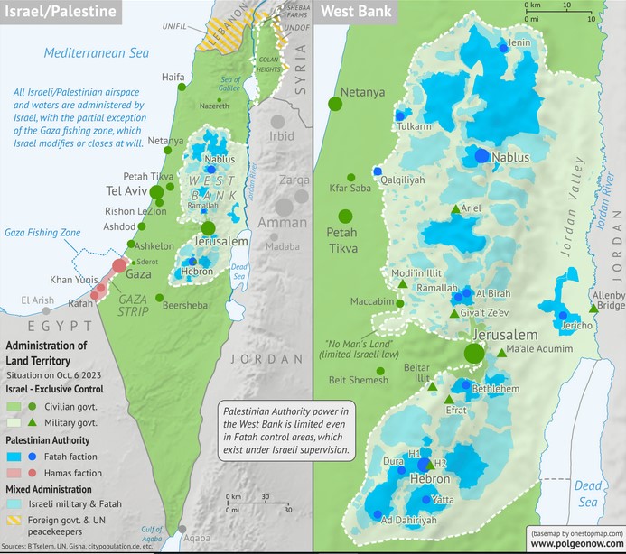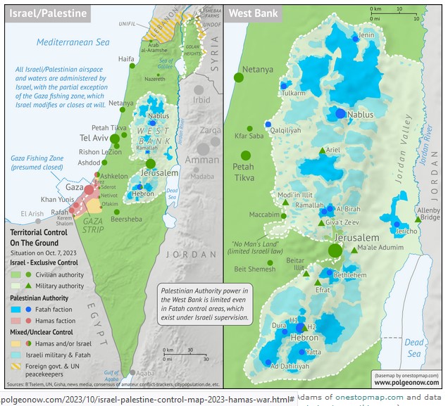 The maps above show the situation on October 7th. Note the absence of large settlements in the South - The Negev desert area originally. |