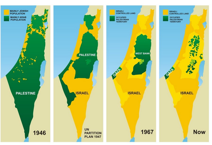 In 1947 the region was divided up into both an Israeli and Palestinian state. Much of the Israel allocation was actually desert. The Israelis accepted these boundaries (which were far from being ideal), but the Arabs did not and began to attack the Israeli defined areas. They were defeated and people were displaced. They do this repeatedly. |