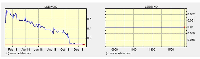 September. August 24 good news from Nigeria. Oct 22nd - MXO have raised £1,000,000 extra cash. Directors taking shares instead of payment. Shares down 50% on high volume. There are a lot of buyers at these levels.