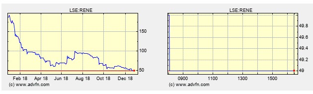 Stem Cell treatment research. First product in trials. April 22 08 a strongly negative (and probably incorrect) report brought a share price fall, quite possibly a good buy opportunity (85p) Jan 23rd 2018 shares restructured 1 for 100 as from 24th Jan. All values readjusted. 10 October oversold at 55