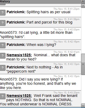 What the keyboard warrior Anon 0573 was on about is anybody's guess. That is also typical of the "anon" references on this type of blog. Nemesis (apparently at work?) queried the word "nominal" which I explained with an example. A later post says "Nedrauk says now that frank charges peppercorn rent" Er where do I say that? As to the "nominal dress" reference - That is manifestly incorrect usage LOL |